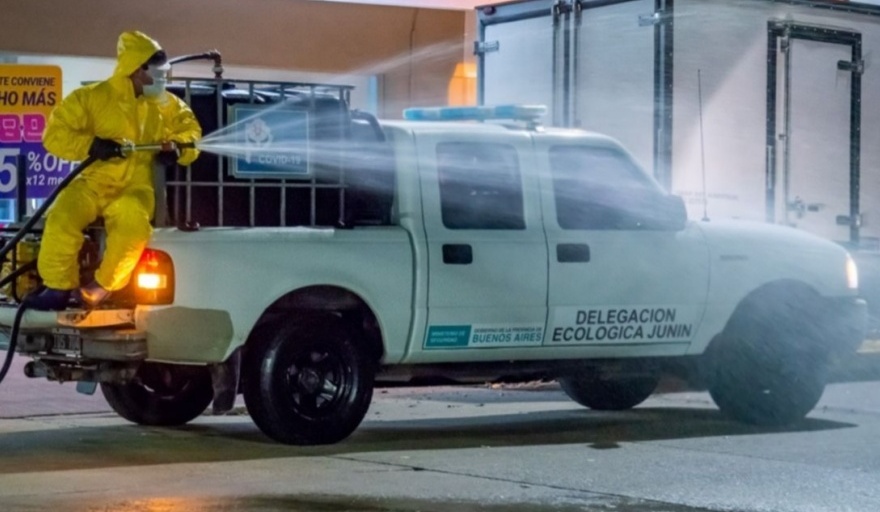 El Gobierno de Junín informa que, con el fin de extremar las medidas de prevención y evitar la proliferación del COVID-19 en la ciudad, Policía Ecológica realizó tareas de desinfección en todos los locales comerciales y domicilios particulares que tuvieron algún tipo de vinculación con los pacientes con casos confirmados.