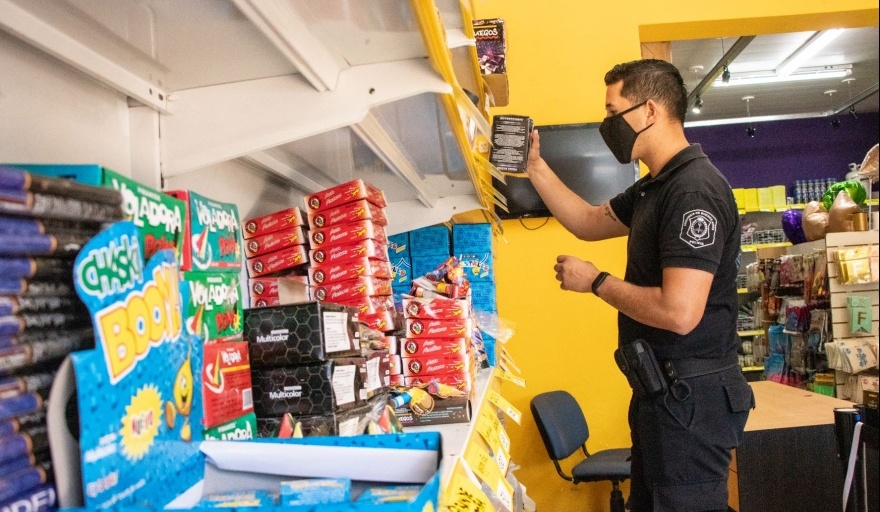 Autoridades de la Secretaría de Seguridad del Gobierno de Junín, conjuntamente con el personal de Explosivos de Bomberos y policía de la provincia de Buenos Aires reforzaron las tareas de fiscalización en cumplimiento con la ordenanza 7246, que prohíbe la venta de pirotecnia de estruendo, entre otras.