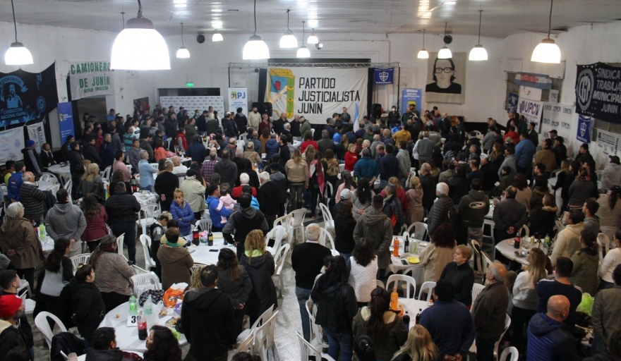 El Partido Justicialista de Junín realizó un multitudinario locro por el 25 de mayo en las instalaciones del club Mariano Moreno, buscando la foto de la unidad, compleja por los mensajes de arriba hacia abajo de la dirigencia. Dirigentes sindicales, políticos y sociales participaron en apoyo al Frente de Todos.