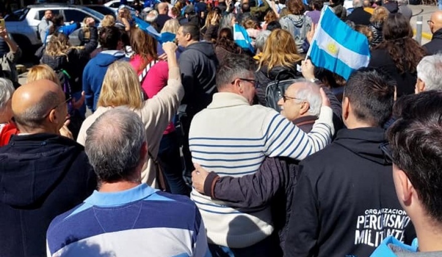 Con el lema “con la bandera a defender la democracia” se fueron convocando vecinos, dirigentes y militantes políticos "en solidaridad con Cristina y en defensa de la vida y de la democracia”, comentó uno de los participantes a INFONOROESTE.