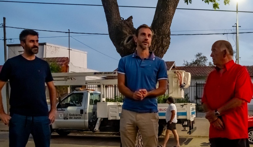 El Plan de Reconversión Lumínica municipal cubrió el 100% del barrio Evita. Así lo aseguró el jefe del Gobierno de Junín, Pablo Petrecca, quien se hizo presente en dicho sector de la ciudad junto a parte del equipo de Gobierno y el equipo de Alumbrado Público a los efectos de conversar con los vecinos y fomentistas sobre la concreción de esta obra, que implicó la colocación de las correspondientes columnas en reemplazo de los colgantes. Además, el proceso de intervención integral llevado adelante por el Municipio en este barrio abarca también la colocación de seis cámaras de seguridad, nuevos nomencladores, ordenamiento del tránsito, obras de infraestructura en el polo educativo y arreglo de la plaza principal.