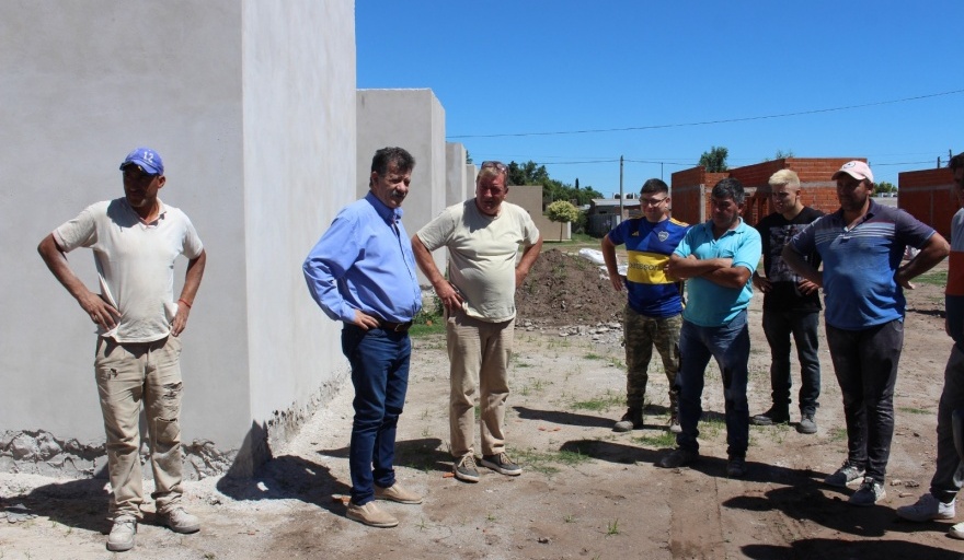 La obras iniciaron en mayo pasado y el intendente recorrió las viviendas en ejecución a un año de la firma del convenio, que se concretó en ocasión de la visita del entonces ministro de Hábitat y Desarrollo Urbano de la Provincia, Agustín Simone.