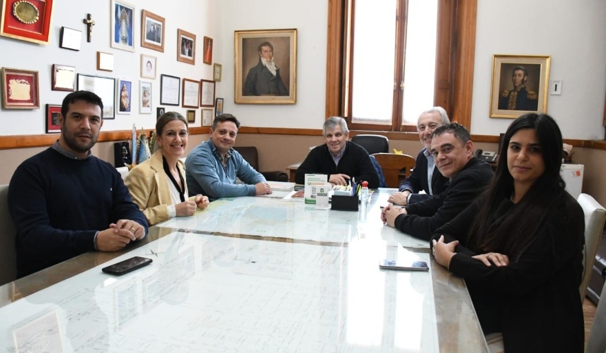 Pascual se reunió con el intendente Guillermo Britos y del encuentro también participaron el jefe Regional de ANSES, Leandro Cabrera; el director regional de la UGL 38 de PAMI, Federico Feminella; el secretario de Gobierno, Ezequiel Pinotti, y la coordinadora de Empleo, Melina Ratto.