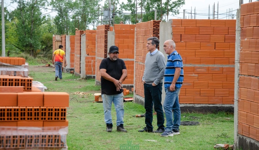 El intendente Juanci Martínez y el secretario de Obras Públicas y Hábitat, Arq. Juan Dufourc, realizaron una visita a la obra de las 43 viviendas, que se encuentra en progreso.