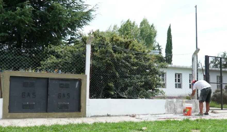 En la actualidad se están desarrollando trabajos de pulido de piso –unos 670 mts2 de piso granito con máquina-, pintura en las paredes y aberturas. Además, se trabaja en la colocación de luminarias, tanto interiores como exteriores, limpieza del patio y nivelación, y en la ejecución de la perforación con bomba sumergible para riego con agua subterránea.