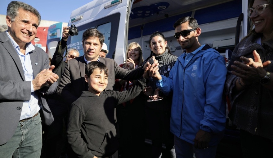El gobernador de la provincia de Buenos Aires, Axel Kicillof, encabezó este viernes el acto de entrega de una ambulancia de alta complejidad y de patrulleros destinados a fortalecer la seguridad en el municipio de Rivadavia, junto al ministro de Seguridad, Javier Alonso, y el intendente local, Juan Alberto Martínez. Acompañado por el ministro de Justicia y Derechos Humanos, Juan Martín Mena, otorgó también escrituras gratuitas para familias de América.