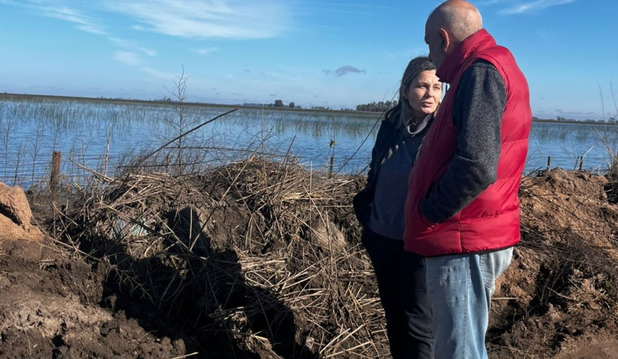 La Intendente Municipal de Nueve de Julio, María José Gentile, visitó la localidad de Facundo Quiroga para supervisar distintas zonas afectadas por el exceso hídrico tras las intensas lluvias de los últimos meses.