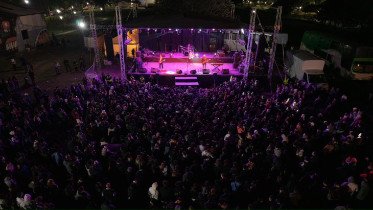 Durante el festejo por el aniversario, el predio del Galpón Cultura + Deporte se colmó de público que disfrutó de los stands de emprendedores, artesanos y gastronómicos, las cantinas de instituciones locales, las presentaciones de artistas rivadavienses y los shows centrales de Los Tipitos y Los Reyes del Cuarteto.
