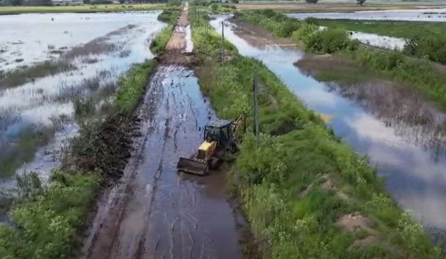 Desde el municipio albertino se informó que se está trabajando en el camino entre Larrea y Mechita para reforzar la contención del agua y evitar el corte del camino.
