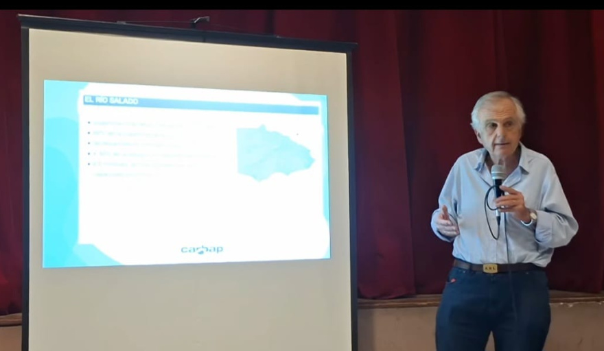 Durante la asamblea, Larrañaga presentó imágenes que recorren la historia del proyecto hídrico, los avances, el financiamiento y la importancia del Fondo Hídrico, herramienta central del sistema de obras que aún necesita ampliarse para continuar su ejecución.