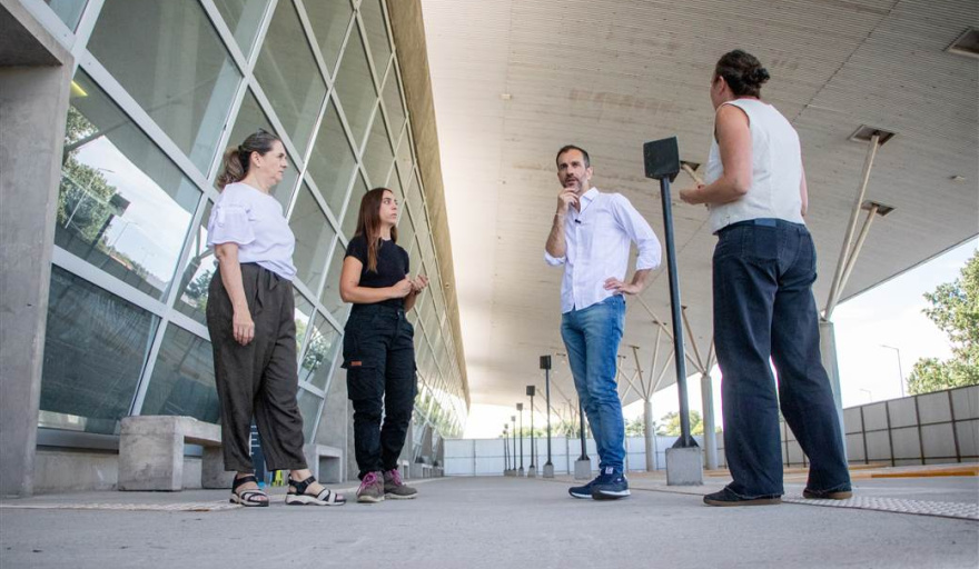 El intendente de Junín, Pablo Petrecca recorrió las instalaciones de la nueva Terminal de Ómnibus junto a la arquitecta Laura Franco, del área de Planificación, y Perla Casella, del área de Coordinación, para supervisar el inicio de la segunda etapa de obra que transformará el sector pendiente en un nuevo paseo comercial. Durante la visita dialogaron con Camila Comisso, arquitecta jefa del proyecto, quien detalló los trabajos que comienzan a ejecutarse sin interrumpir el funcionamiento del edificio.