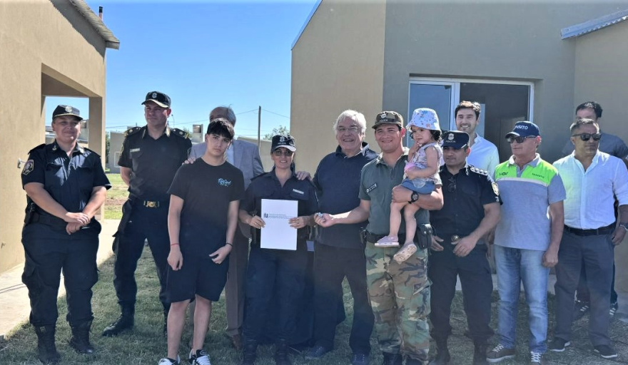 El intendente municipal Gilberto Alegre encabezó el jueves 18 de diciembre, a las 16 horas, el acto de entrega de 12 viviendas destinadas al personal policial, construidas a través de la Caja de Retiros, Jubilaciones y Pensiones de la Policía de la Provincia de Buenos Aires. La actividad contó además con la presencia del presidente de la Caja, comisario retirado Carlos Langone, y de las familias adjudicatarias.