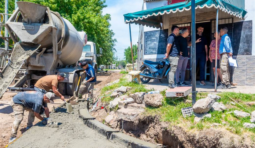 El intendente de Junín, Juan Fiorini, junto al secretario general Manuel Llovet y funcionarios de Obras Públicas, recorrió el barrio Ricardo Rojas para supervisar el avance de la obra de cordón cuneta que se ejecuta en el sector y dialogar con vecinos y referentes barriales sobre los trabajos realizados.